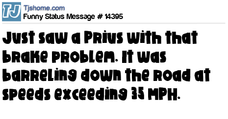 X just saw a Prius with that brake problem. It was barreling down the road at speeds exceeding 35 MPH.