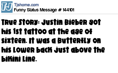 X says True Story: Justin Bieber got his 1st tattoo at the age of sixteen. It was a Butterfly on his lower back just above the bikini line.