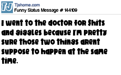 X says I went to the doctor for $hits and giggles because I'm pretty sure those two things arent suppose to happen at the same time.