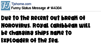 X says Due to the recent out break of Norovirus. Royal Caribbean will be changing ships name to Exploader of the Sea.