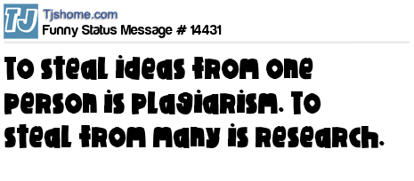 - # 67085 To steal from one is plagiarism, to steal from many is research.
