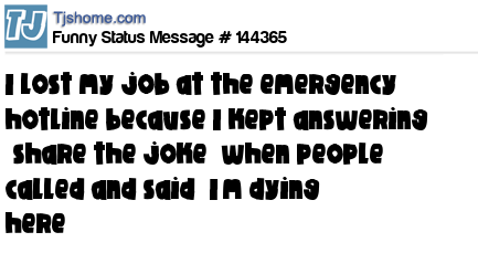 X says I lost my job at the emergency hotline because I kept answering “share the joke” when people called and said “I’m dying here”