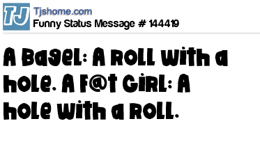 X  A Bagel: A roll with a hole. A F@t Girl: A hole with a roll.