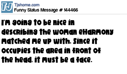 X says I'm going to be nice in describing the woman eHarmony matched me up with. Since it occupies the area in front of the head, it must be a face.