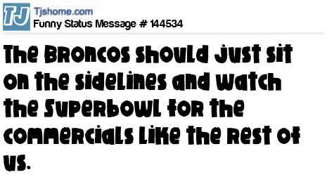 X says The Broncos should just sit on the sidelines and watch the Superbowl for the commercials like the rest of us.