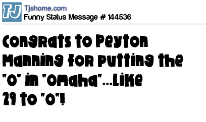 X Congrats to Peyton Manning for putting the "O" in "Omaha"...Like 29 to "O"!
