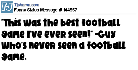 X says "This was the best football game I've ever seen!" -Guy who's never seen a football game.