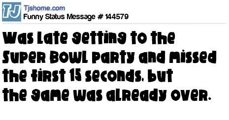 X Was late getting to the Super Bowl party and missed the first 15 seconds, but the game was already over.