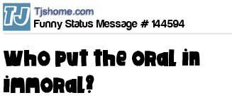 - # 18921 says the difference between ORAL SEX & ANAL SEX,,,,,,,,,,, ,, is ORAL SEX will make your day but ANAL SEX will make your hole weak.......