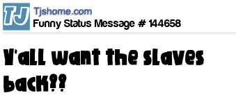 - # 74389 How can you compare the protestors to slaves?!? slaves were born into a hopeless life, but with hard work and accepting the fact that its not somebody elses job to provide for you. You can become anything!