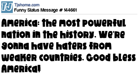 X says America: the most powerful nation in the history. We're gonna have haters from weaker countries. Good bless America!