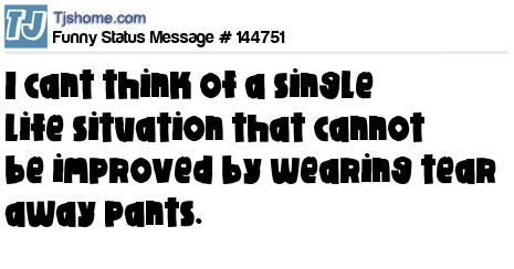 X I cant think of a single life situation that cannot be improved by wearing tear away pants.