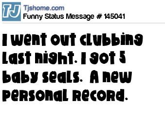 X says I went out clubbing last night. I got 5 baby seals. A new personal record.