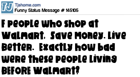 - # 145456 If people who shop at Walmart, “Save Money. Live Better.” Exactly how bad were these people living BEFORE Walmart?