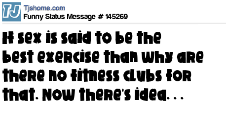 X says If sex is said to be the best exercise than why are there no fitness clubs for that. Now there's idea. . .