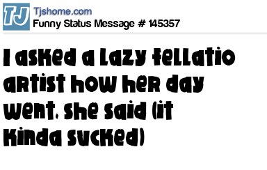 X says I asked a lazy fellatio artist how her day went, she said (it kinda sucked)