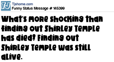 - # 145417 Shirley Temple died today. I just wish there was something I could drink to honor her.