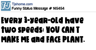 X says Every 3-year-old have two speeds: YOU CAN’T MAKE ME and FACE PLANT.