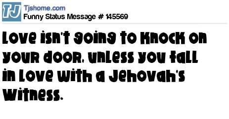 X says Love isn't going to knock on your door, unless you fall in love with a Jehovah's Witness.