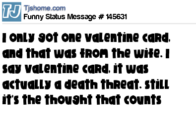 X says I only got one valentine card, and that was from the wife. I say valentine card, it was actually a death threat. still it's the thought that counts