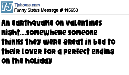X says an earthquake on valentines night....somewhere someone thinks they were great in bed to their lover for a perfect ending on the holiday