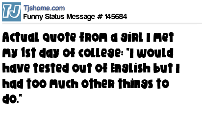 X says Actual quote from a girl I met my 1st day of college: "I would have tested out of English but I had too much other things to do."