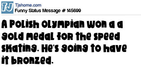 X A Polish Olympian won a a gold medal for the speed skating. He's going to have it bronzed.