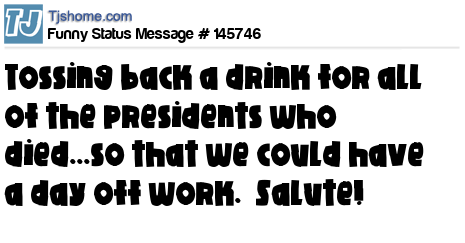 X says Tossing back a drink for all of the presidents who died...so that we could have a day off work.  Salute!