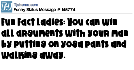 X says Fun Fact Ladies: You can win all arguments with your man by putting on yoga pants and walking away.