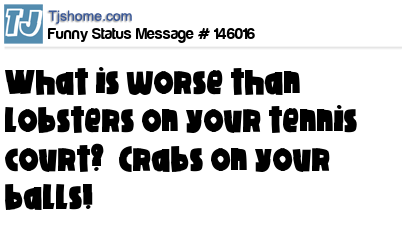 X  What is worse than lobsters on your tennis court?  Crabs on your balls!