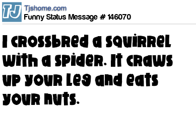 X says I crossbred a squirrel with a spider. It craws up your leg and eats your nuts.