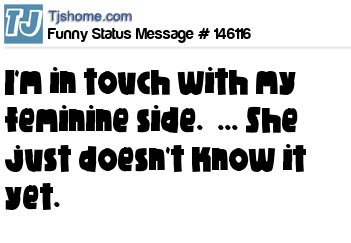 X says I'm in touch with my feminine side. ... She just doesn't know it yet.