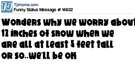 X is wonders why we worry about 12 inches of snow when we are all at least 5 feet tall or so..we'll be ok