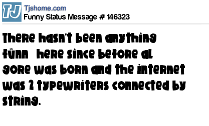 X says There hasn't been anything fûnný here since before al gore was born and the internet was 2 typewriters connected by string.