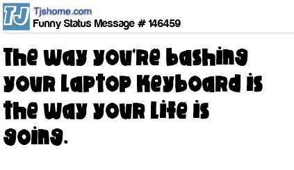 - # 146460 The way you're bashing your laptop keyboard is how your life is going.