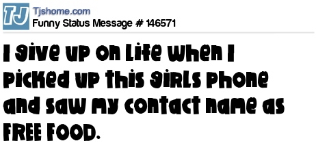 - # 164583 I gave up on life when I picked up this girls phone and saw my contact name as "Free Food".