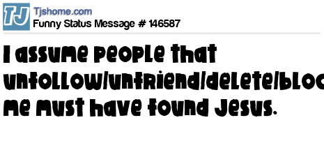 X says I assume people that unfollow/unfriend/delete/block me must have found Jesus.