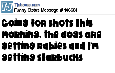 X says going for shots this morning. the dogs are getting rabies and I'm getting starbucks