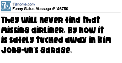 X They will never find that missing airliner. By now it is safely tucked away in Kim Jong-un's garage.