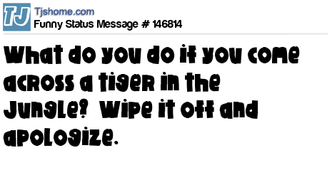X says What do you do if you come across a tiger in the Jungle? Wipe it off and apologize.