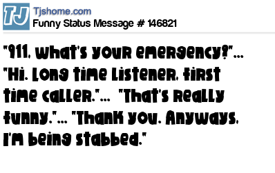 X "911, what's your emergency?"... "Hi. Long time listener, first time caller."... "That's really funny."... "Thank you. Anyways, I'm being stabbed."
