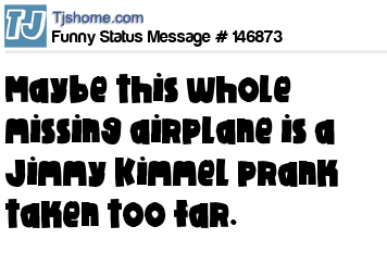 X  maybe this whole missing airplane is a Jimmy Kimmel prank taken too far.