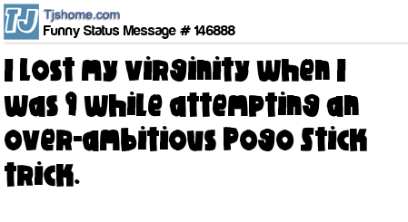 X I lost my virginity when I was 9 while attempting an over-ambitious Pogo Stick trick.