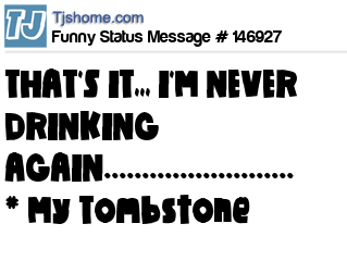 - # 145740 I'M NEVER DRINKING AGAIN My tombstone.