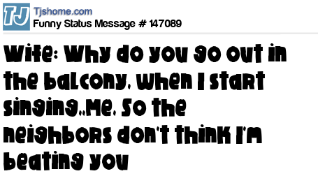 X Wife: Why do you go out in the balcony, when I start singing,,Me, So the neighbors don't think I'm beating you