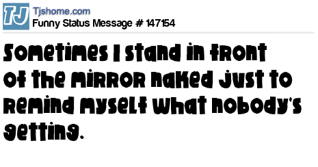 X says Sometimes I stand in front of the mirror naked just to remind myself what nobody's getting.
