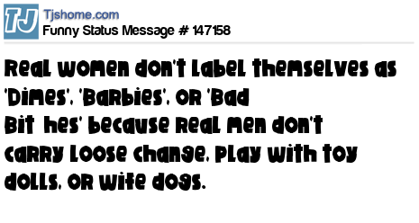 X Real women don't label themselves as 'Dimes', 'Barbies', or 'Bad Bitćhes' because real men don't carry loose change, play with toy dolls, or wife dogs.