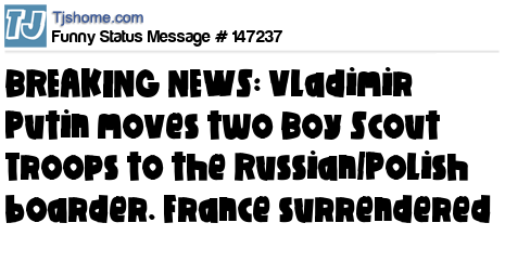 X says BREAKING NEWS: Vladimir Putin moves two Boy Scout Troops to the Russian/Polish boarder. France surrendered