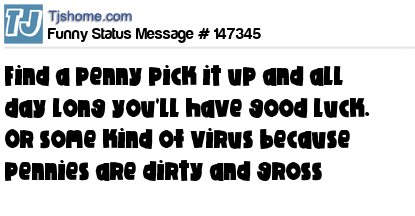 X says Find a penny pick it up and all day long you'll have good luck. Or some kind of virus because pennies are dirty and gross