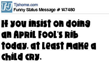 X says If you insist on doing an April Fool's rib today, at least make a child cry.